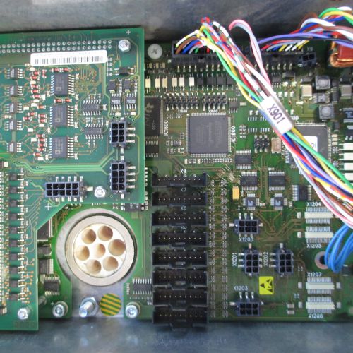 Carte de sécurité Kuka pour armoires KRC2Ed05 qui contrôlent également la sécurité de plusieurs axes servocommandés supplémentaires.