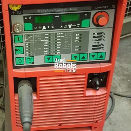 - 1 x source d'alimentation Fronius Synergic, modèle TPS4000, puissance 400 A, à refroidissement liquide, adaptée à l'aluminium, l'acier au carbone et autres alliages.