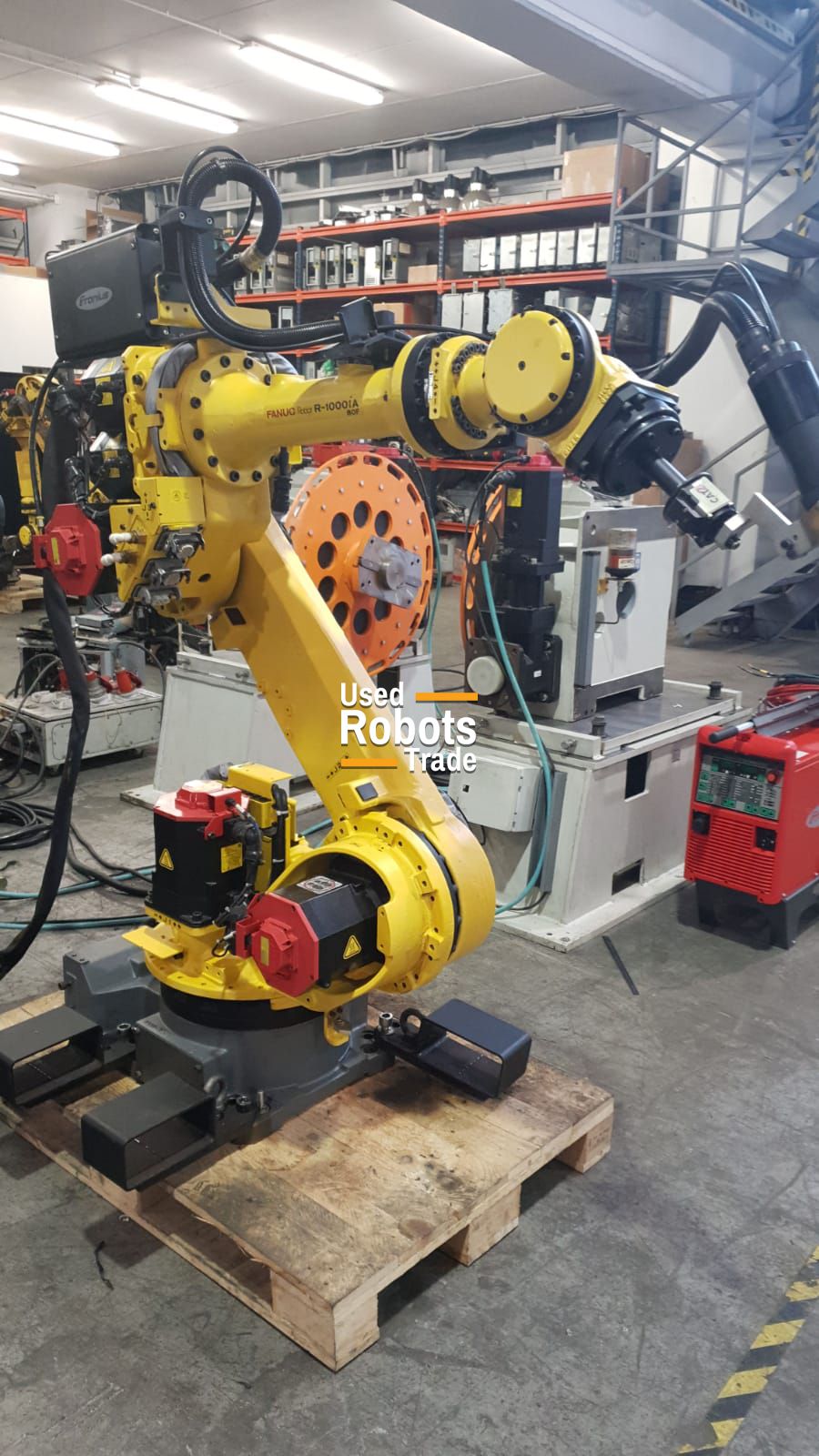 Ce robot Fanuc utilisé R1000iA 80F est un performer à haute vitesse, capable d’accélérer rapidement et d’améliorer les temps de cycle sur une gamme d’opérations comprenant le soudage, la manutention et la palettisation. Le robot a 6 axes qui offrent une grande flexibilité dans une large gamme de systèmes dans des environnements humides et poussiéreux. Le robot est fourni avec un contrôleur rapide R30iA et s'interface avec le positionneur: charge utile de 1000 kg et redius1000mm. Cela fonctionne avec un TPS4000 Fronius.